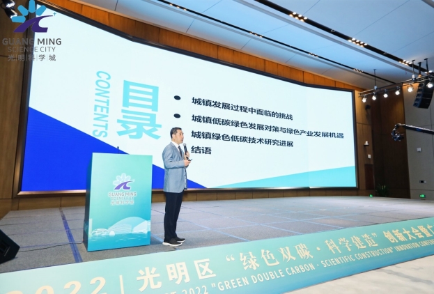 会上,大咖云集共同探讨绿色建设与发展。中国工程院院士马军做了题为“碳中和愿景下城镇低碳绿色发展对策与生态产业发展机遇”的演讲。